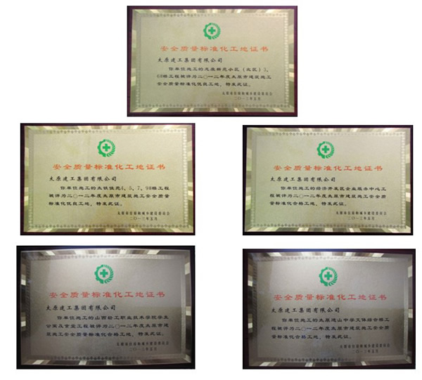 集團公司承建的太鐵佳苑4#、5#、7#、9#樓、龍康新苑小區(qū)(北區(qū))3#、6#樓被評為二0一二年度太原市建筑施工安全質量標準化優(yōu)良工地,山西輕工職業(yè)技術學院學生公寓及食堂、太原進山中學文體綜合樓、經濟開發(fā)區(qū)企業(yè)服務中心被評為二0一二年度太原市建筑施工安全質量標準化合格工地。