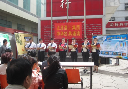 近日,集團(tuán)公司在機(jī)關(guān)院內(nèi)舉行了旨在提升文化氛圍、引深文明創(chuàng)建的“中華經(jīng)典誦讀”活動(dòng)。公司機(jī)關(guān),各分公司、子公司黨支部共13支代表隊(duì)參加了本次活動(dòng)并制作了宣傳版面;顒(dòng)中各代表隊(duì)以飽滿的精神風(fēng)貌注釋、演繹、傳誦著經(jīng)典,使中華經(jīng)典的鏗鏘音韻在公司上空回響,讓中華經(jīng)典的千古風(fēng)韻在員工的心頭蕩漾,起到了很好的宣傳、教育作用。 本次活動(dòng)共評(píng)選出一、二、三等獎(jiǎng)及各獨(dú)立獎(jiǎng)項(xiàng)13項(xiàng),由集團(tuán)公司黨委頒發(fā)了證書,給予了物質(zhì)獎(jiǎng)勵(lì)。集團(tuán)公司領(lǐng)導(dǎo)成員,分公司、子公司班子成員及公司員工100余人參加了本次活動(dòng)。
