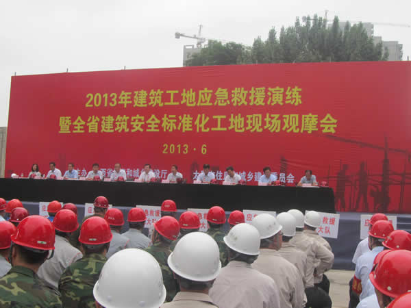 6月18日上午,由山西省住房和城鄉(xiāng)建設廳與太原市住房和城鄉(xiāng)建設委員會舉辦的“2013年建筑工地應急救援演練暨全省建筑安全標準化工地現(xiàn)場觀摩會”在萬科藍山項目部舉行。此次活動,圍繞“強化安全基礎,推動安全發(fā)展”為主題開展。我集團公司作為應急救援七大隊參加并觀摩了現(xiàn)場物體打擊應急救援演練,通過視頻觀看了基坑坍塌的應急救援演練。