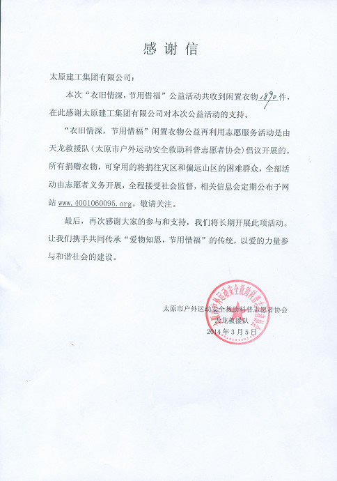 活動結(jié)束后,集團公司將全部衣物向天龍救援隊進行了捐贈。