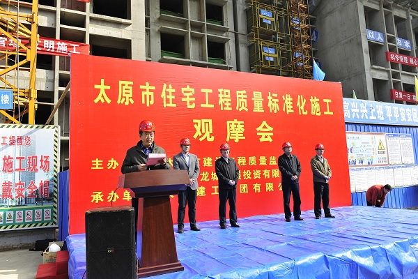2015年4月3日上午,為貫徹落實建設部全國工程質量治理兩年行動電視電話會議和山西省住建廳、太原市住建委工程質量治理兩年行動推進會議精神,進一步規(guī)范全市建筑質量標準化施工,保障住宅工程質量。由太原市建設工程質量監(jiān)督站、太原市龍城發(fā)展投資有限公司主辦,太原建工集團有限公司承辦的“太原市住宅工程質量標準化施工觀摩會”在我公司承建的“太原市府東街東延棚戶區(qū)改造安置用房項目”現場舉行。