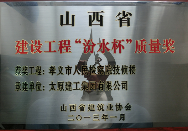 該工程先后榮獲工程先后獲呂梁市安全文明工地、呂梁市優(yōu)良工程,山西省標(biāo)化工地、山西省優(yōu)良工程,2012年度獲山西省建筑工程最高質(zhì)量獎(jiǎng)—“汾水杯”。